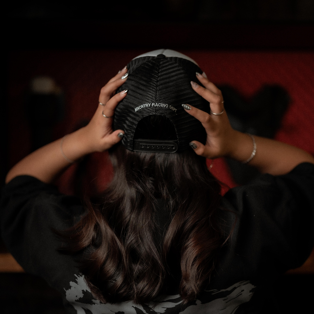 White & Black / Front: Screen Print / Back: Embroidery / Side: Embroidery / Black Mesh / Adjustable